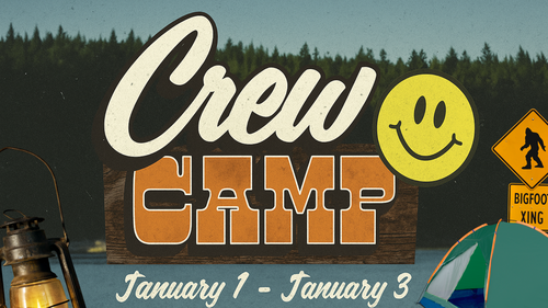 Start the year off right at Crew Camp 2026! 📅 January 1–3, 2026 📖 Theme: “In the Silence” (Lamentations 3:26) We’ll spend three days together worshiping, hearing powerful messages, battling it out in Crew Wars, taking on challenges, and making memories with friends. More than anything, we’re believing this will be a weekend to encounter God’s presence and learn to hear His still, small voice in a fresh way.
